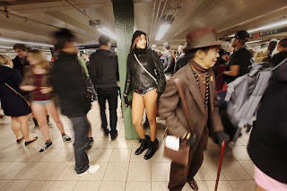 No Pants Subway Ride 2012 pictures. The temperature was down at 32 degrees still the followers of the no pants subway ride were seen moving the subway at New York without pants. Hundreds of people were there in the 10th Annual no Pants Subway Ride. Men women, from across the places saw the crowd of people who had gathered to take the ride. People were wearing no pants usually in underwears or stockings. Here are the pictures from the subway ride.