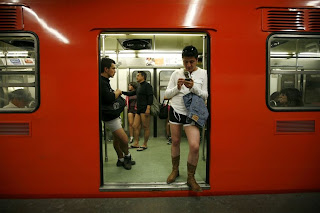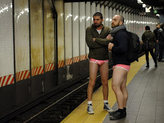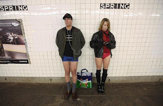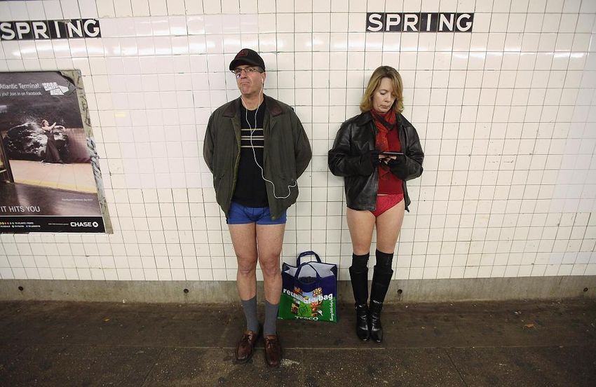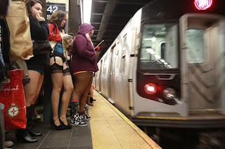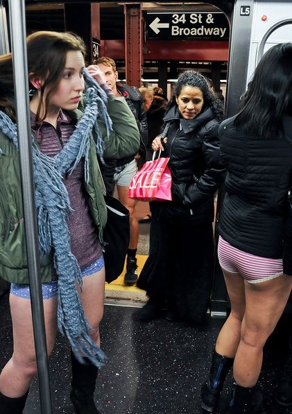 No Pants Subway Ride 2012 pictures. The temperature was down at 32 degrees still the followers of the no pants subway ride were seen moving the subway at New York without pants. Hundreds of people were there in the 10th Annual no Pants Subway Ride. Men women, from across the places saw the crowd of people who had gathered to take the ride. People were wearing no pants usually in underwears or stockings. Here are the pictures from the subway ride.