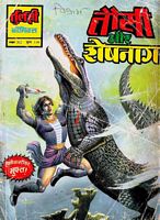 Tausi was a common snake who after the request of his teacher please lord Shiva and become a shape changing ichchadhari snake and gathered supernatural powers he was also given a gem by lord Shiva. Some humans try to take this gem from him and in this they kill his wife Apsara, Tausi becomes furious and vows to kill all bad guys on earth. What happens next can be read in all the Tausi comics. These comics are now being republished by Raj comics and can be brought from online stores.